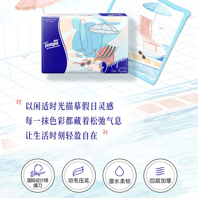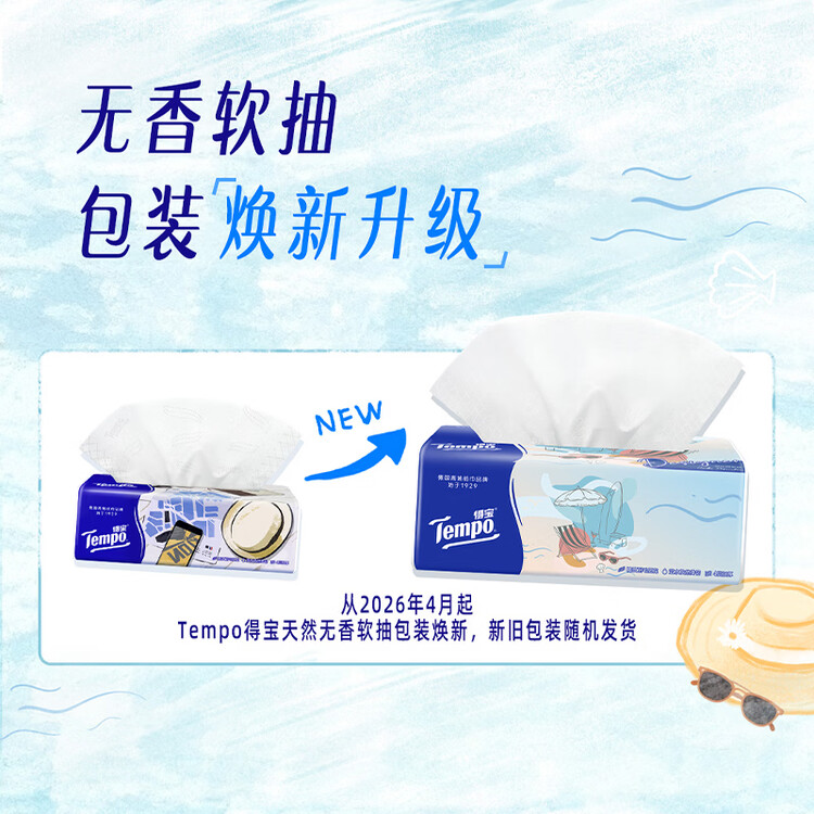 得宝(TEMPO)一博同款 抽纸无香4层100抽*18包M码 新旧包装混发 纸巾卫生纸