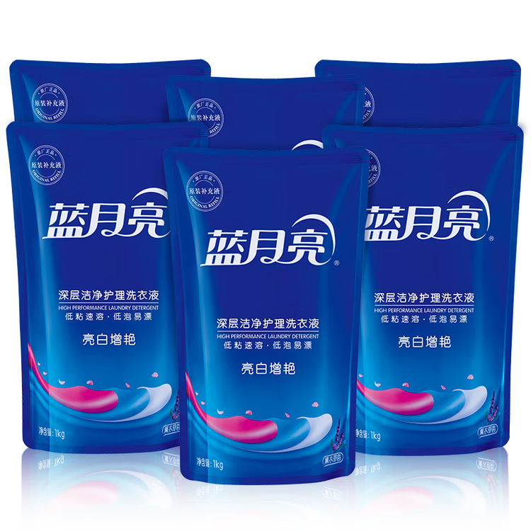 蓝月亮 亮白增艳洗衣液袋装(薰衣草香)1kg*6袋 强效去污 护色增艳