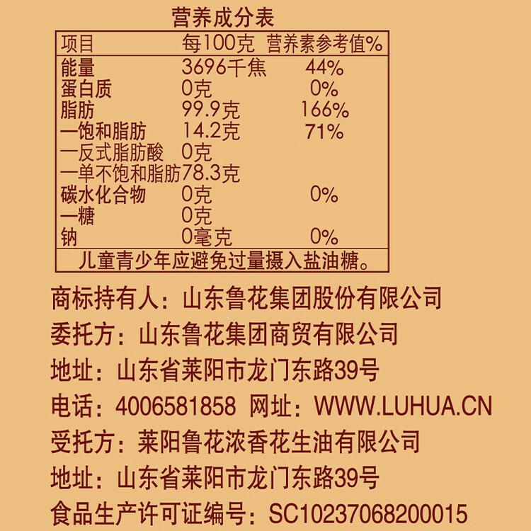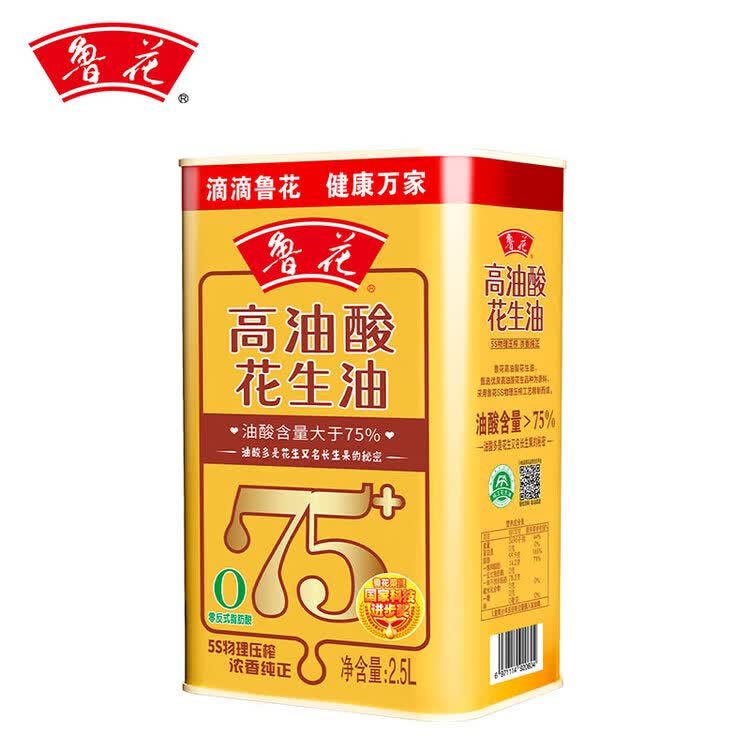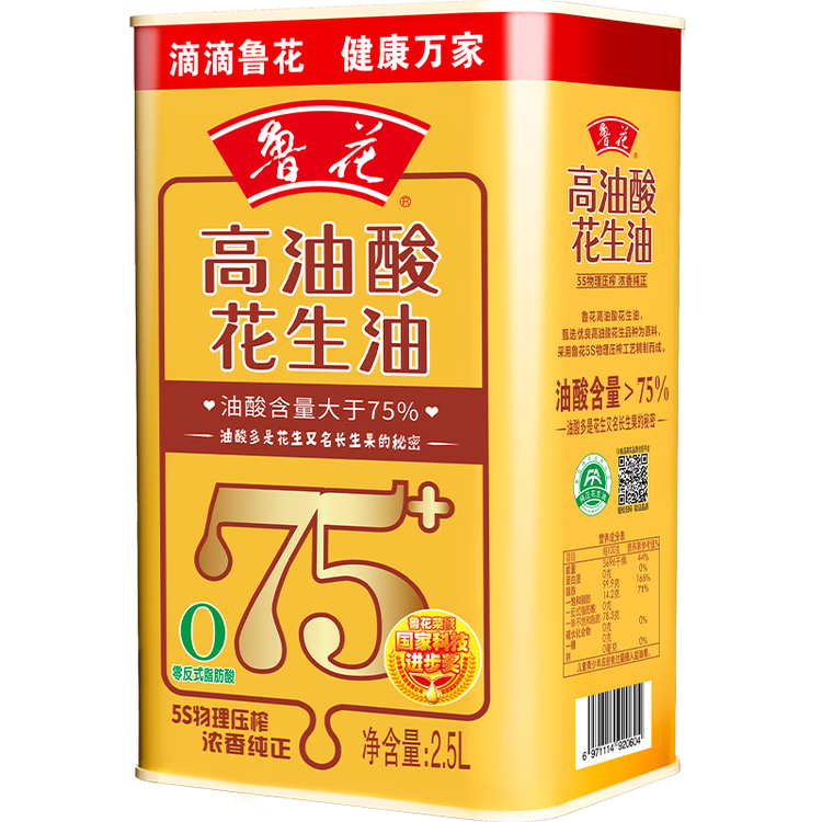 鲁花【保真花生油】 高油酸花生油2.5L 铁罐装 5S物理压榨