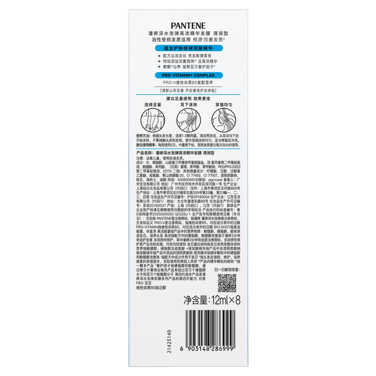 潘婷玻尿酸发膜深水泡弹12ml*8京东自营高浓护发素弹韧亮柔顺养发修护