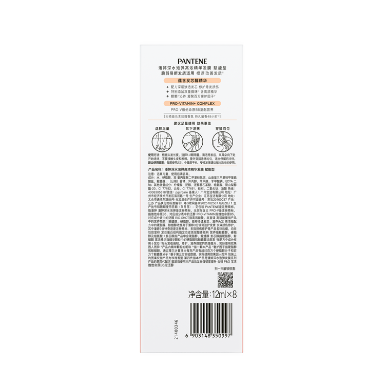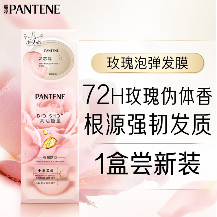 潘婷玫瑰留香弹韧亮发膜12ml*8京东自营高浓护发素柔顺修护深水泡弹
