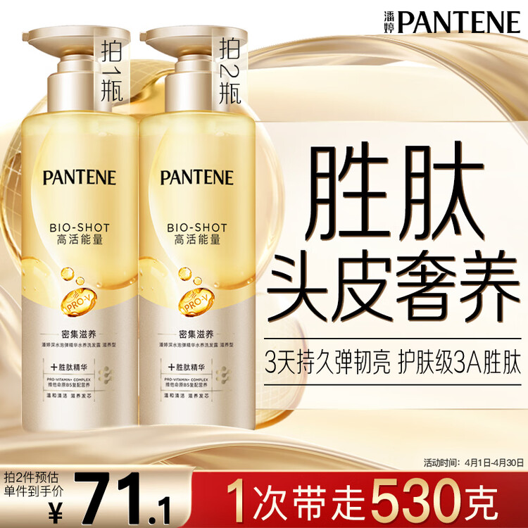 潘婷胜肽泡弹洗发水530g弹韧嘭嘭滋养洗发露洗发膏京东自营深水泡弹
