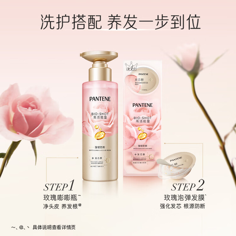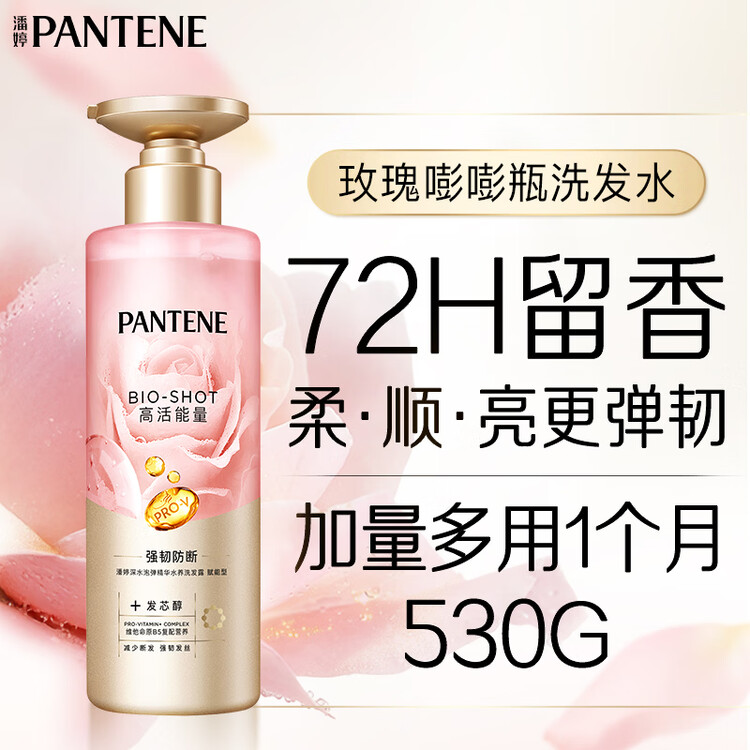 潘婷玫瑰嘭嘭瓶弹韧留香洗发水530g洗发露洗发膏京东自营深水泡弹柔顺