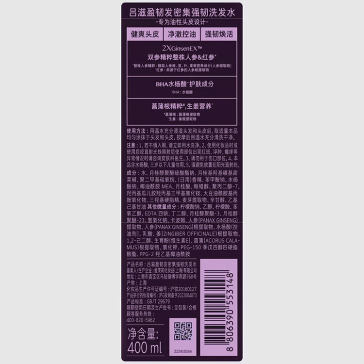 吕(Ryo)紫吕洗发水400ml*2 控油蓬松强韧防断发洗发膏洗发露【油头专研】