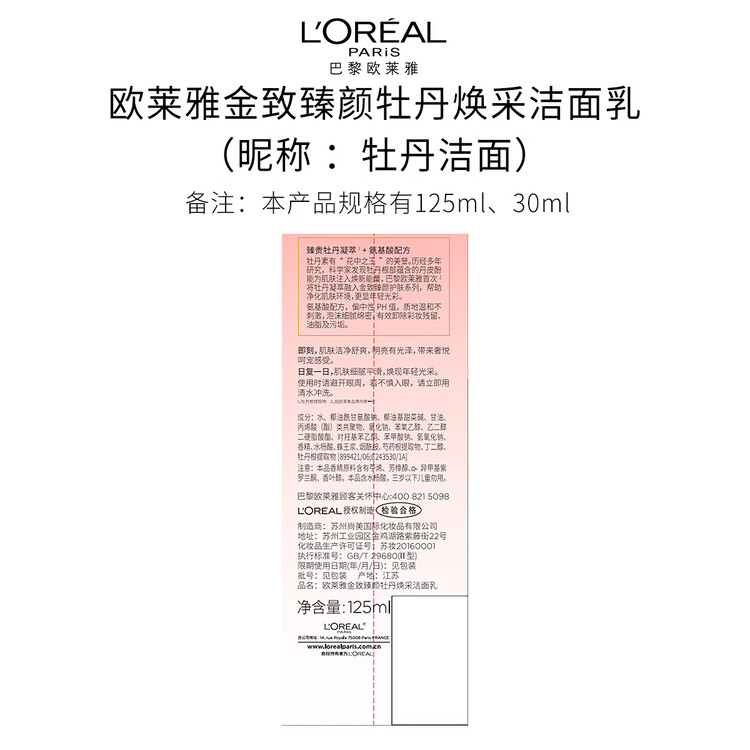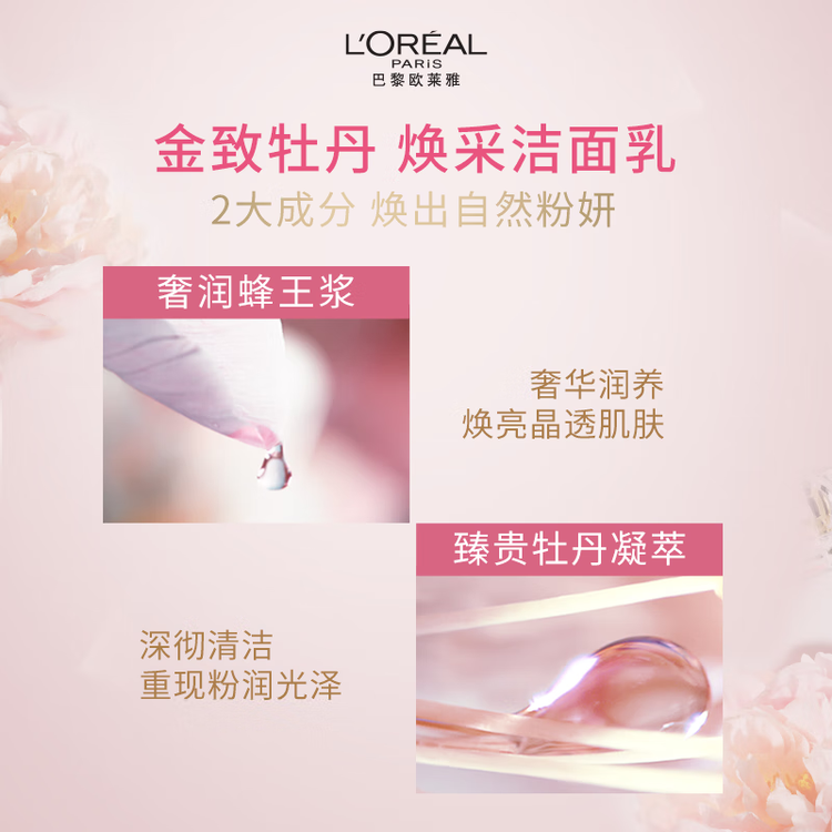 京东直供新 > 美妆护肤 >面部护肤 >京东直供 >欧莱雅牡丹洁面乳125ml氨基酸清洁洗面奶男女护肤品母亲节礼物