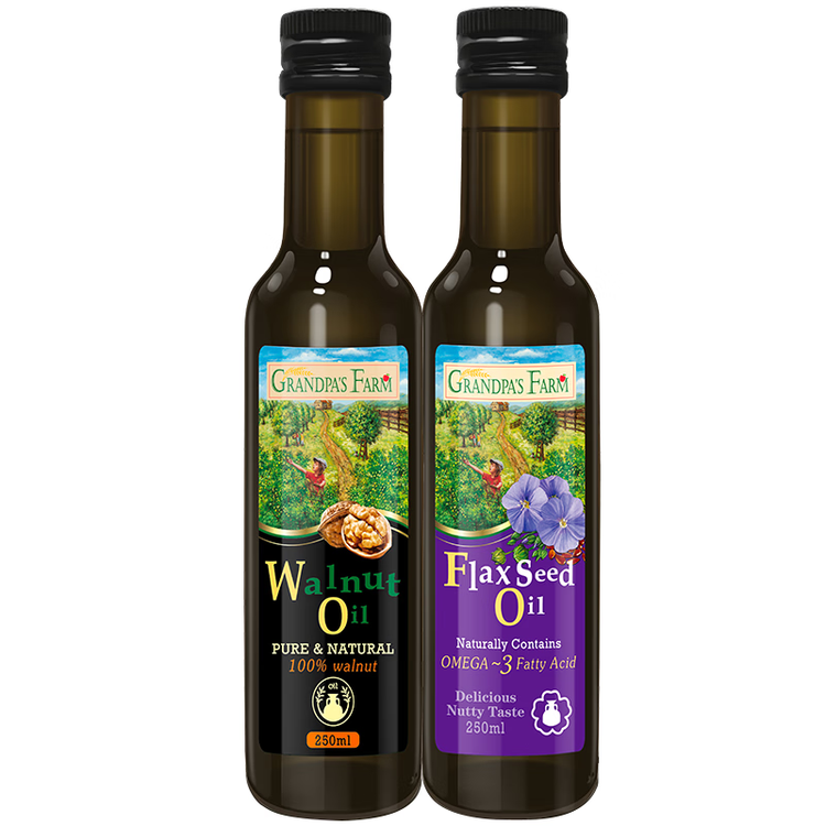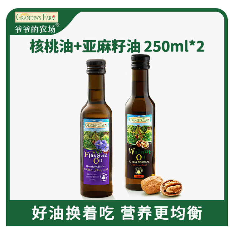 爷爷的农场核桃油亚麻籽油250ml*2 热炒凉拌食用油全家共享 赠婴儿辅食食谱