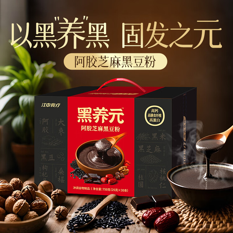 江中猴姑黑养元阿胶芝麻黑豆粉30天滋补高蛋白乌发高钙代餐礼盒750g