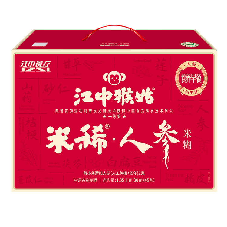 江中猴姑米稀人参米糊45天装猴头菇养胃粉早餐营养品送长辈礼盒1.35kg