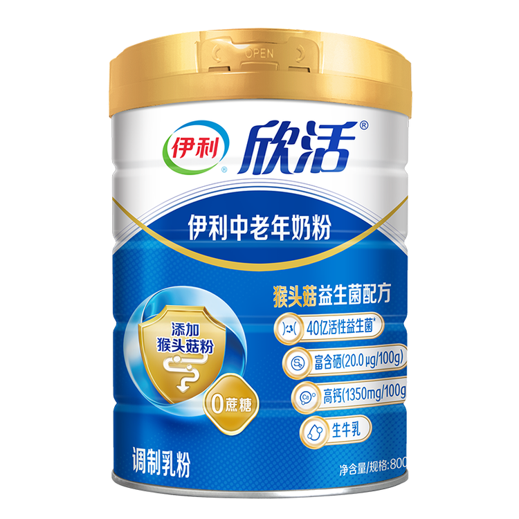 伊利欣活 中老年奶粉 送礼 营养品 早餐 富硒高钙高蛋白益生菌 800g