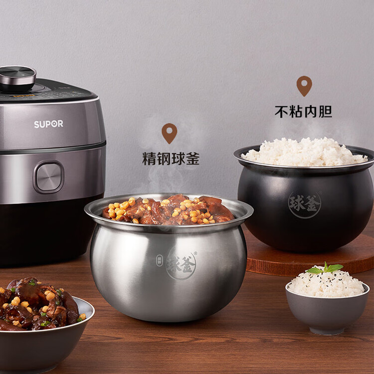 苏泊尔(SUPOR)鲜呼吸IH电压力锅5L家用自动排气304球釜SY-50HC8033Q双胆电饭煲高压锅4-6人内胆批次随机发货