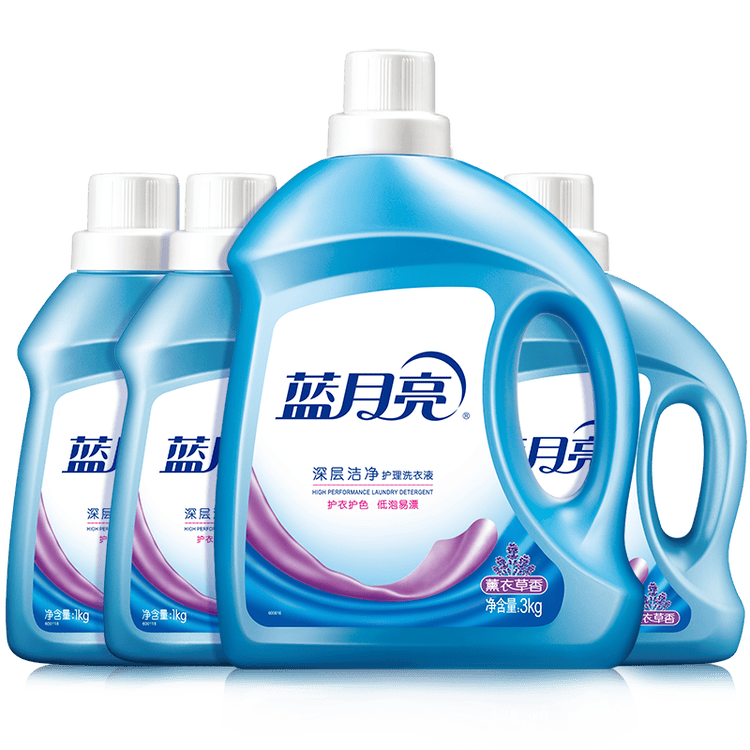 蓝月亮深层洁净洗衣液 薰衣草香 3kg瓶+1kg*3瓶 高效除螨 强效去污