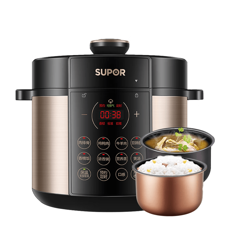苏泊尔(SUPOR)国风系列电压力锅 5L智能预约 70kPa煲汤小米粥双胆 50YC9086电饭煲高压锅4-6人 内胆批次随机发货