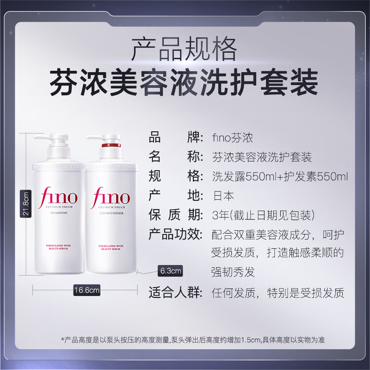 FINO芬浓美容液洗护套装洗发露550ml+护发素550ml柔顺强韧热销商品
