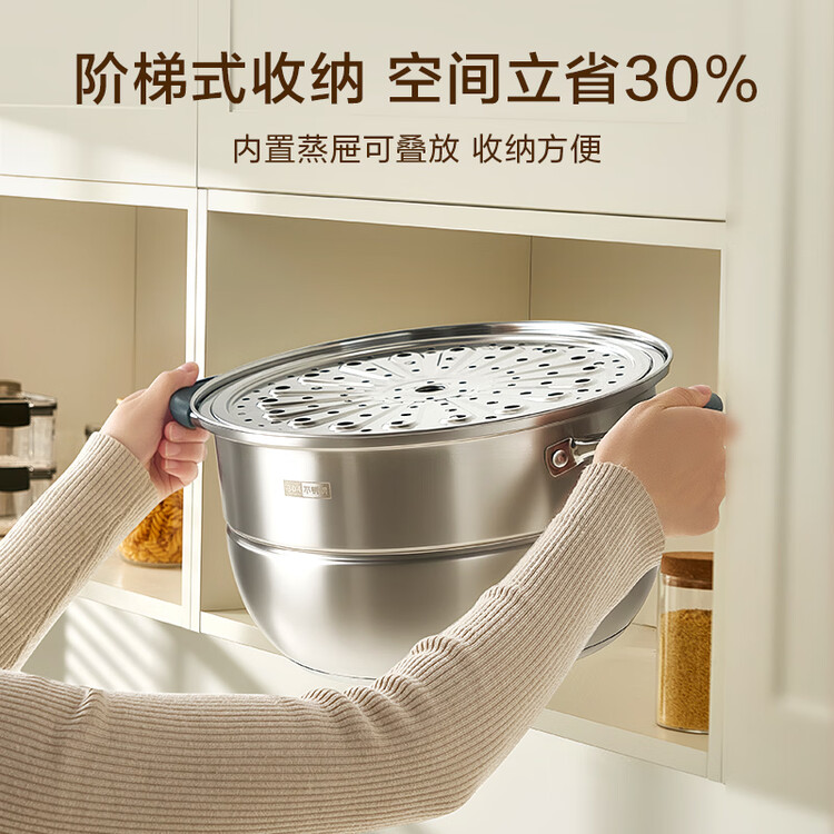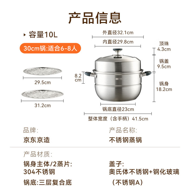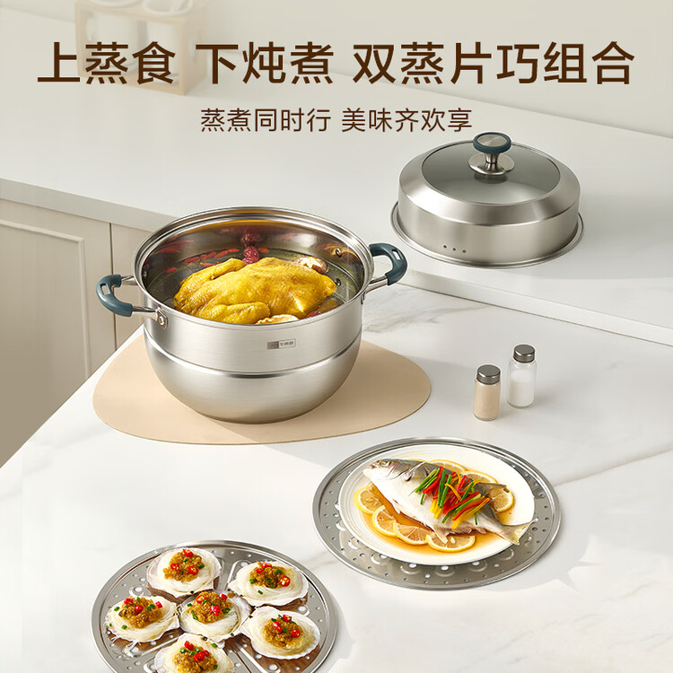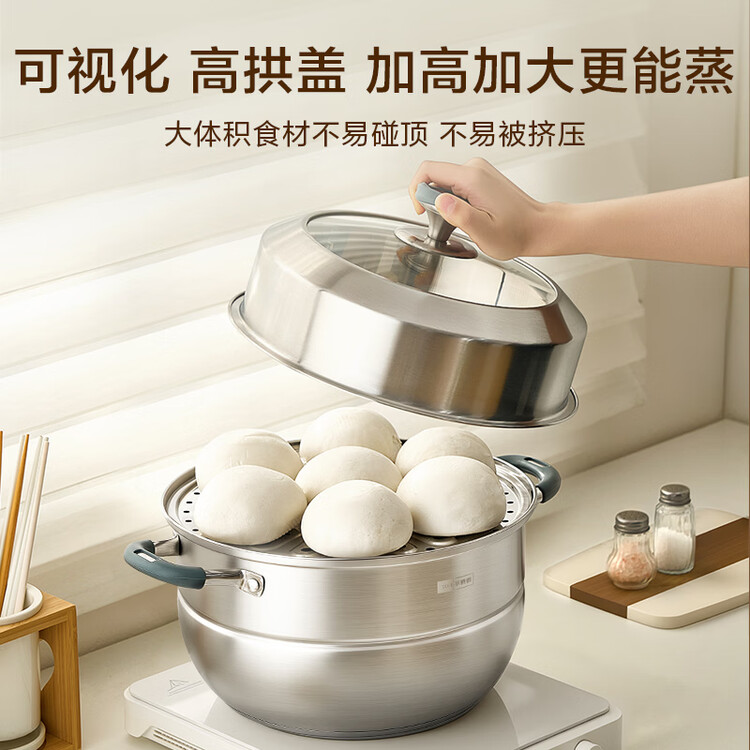 京东京造 蒸锅 大容量304不锈钢汤锅加厚炖蒸煮燃气灶家用 双层30cm