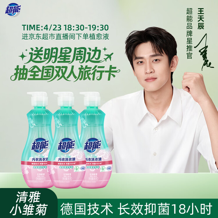 超能 内衣洗衣液5.16斤(860g*3瓶) 清新祛异味 内衣内裤洗 内衣净