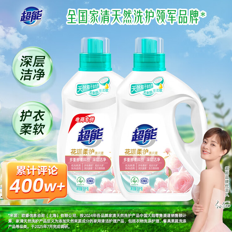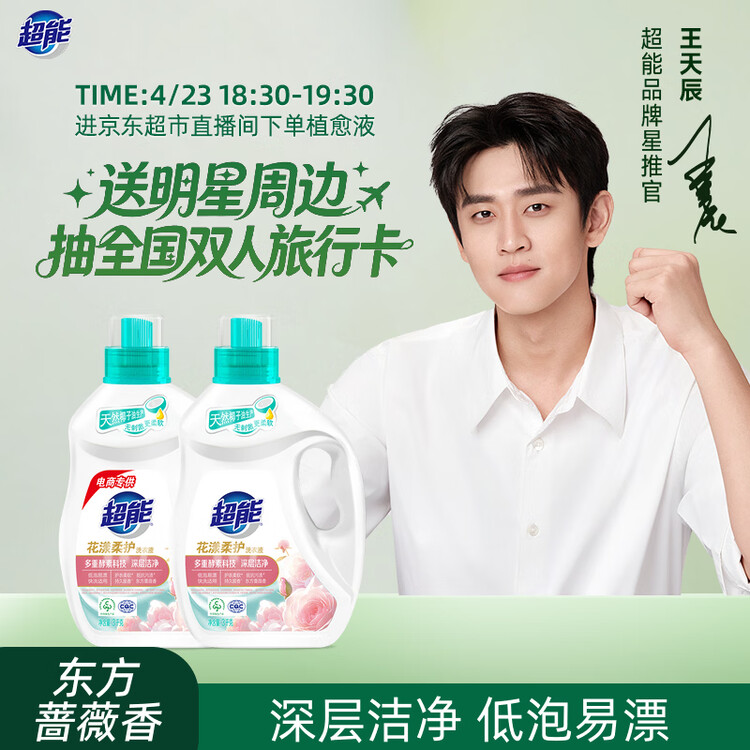 超能洗衣液3kg*2瓶 12斤家庭实惠装 去渍洁净 花漾柔护 持久留香
