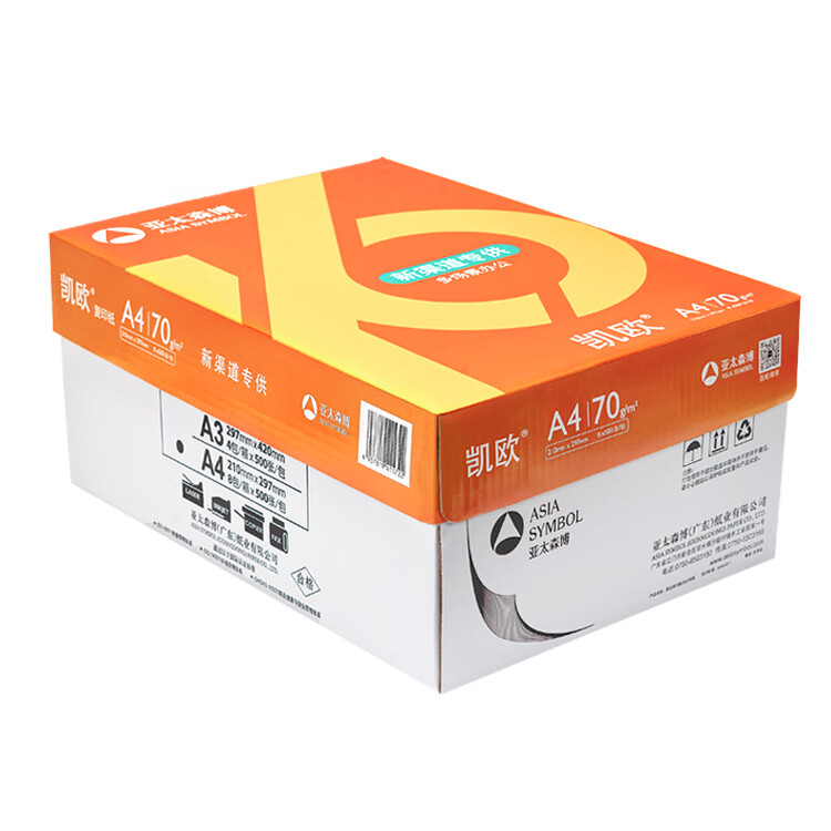 亚太森博(Asia Symbol)凯欧70g A4复印纸 500张/包 5包/箱(2500张)