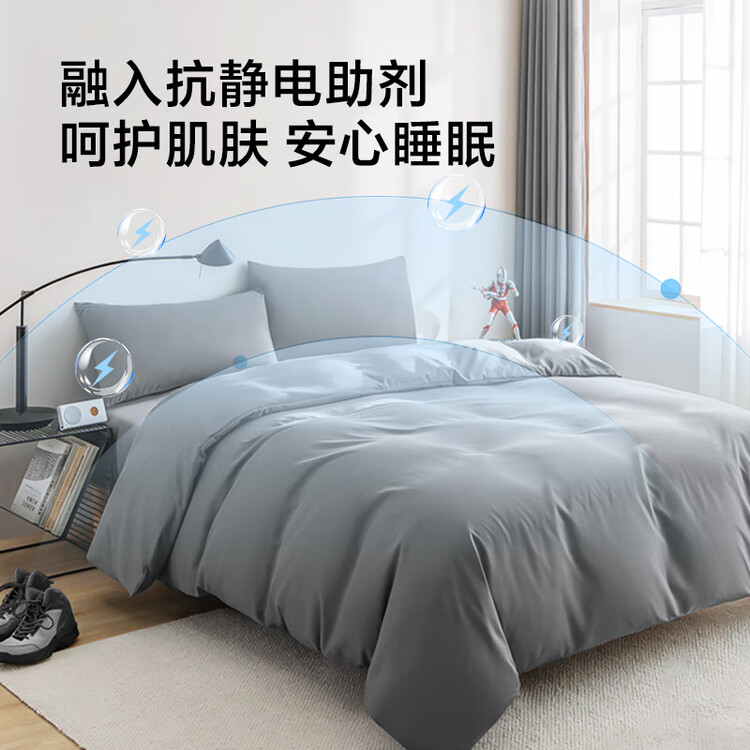 京东京造悦柔四件套 120g柔软磨毛春夏耐用 A类双人床上用品床单被套枕套 1.8米科技灰