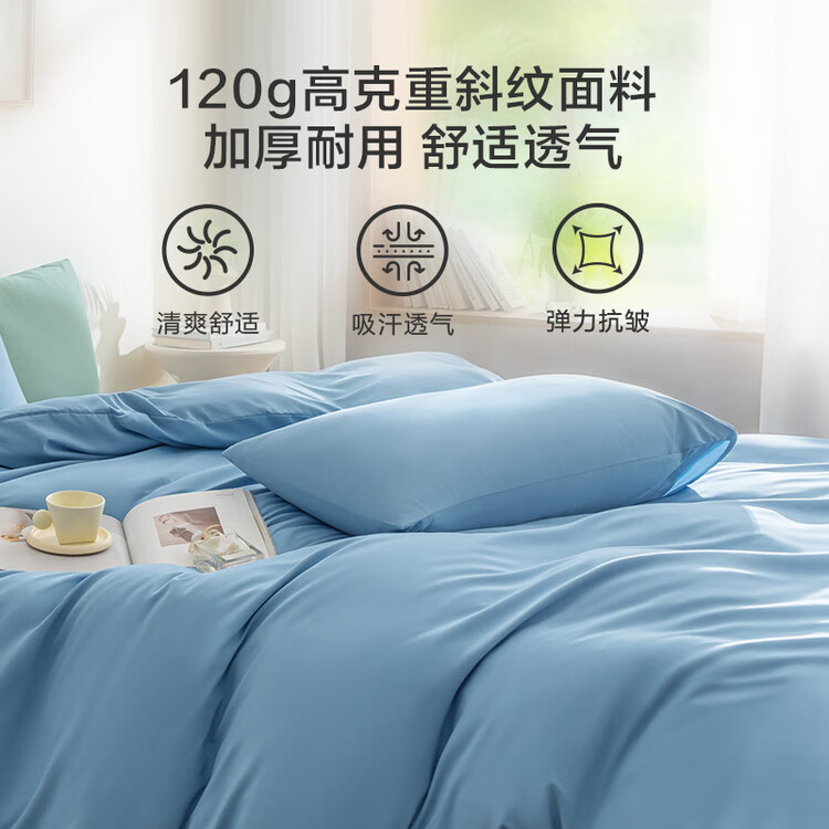 京东京造悦柔四件套 120g柔软磨毛春夏耐用 A类双人床上用品床单被套枕套 1.5米天空蓝