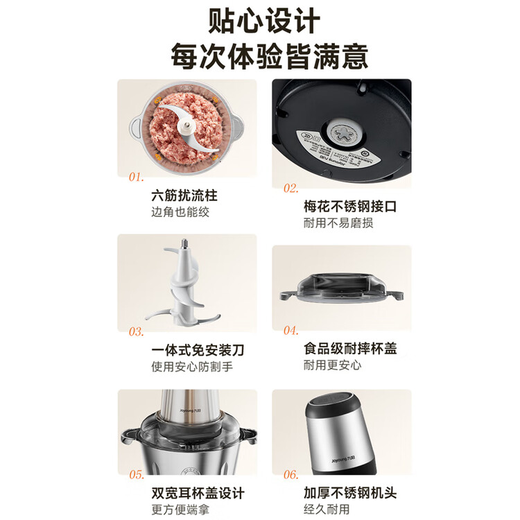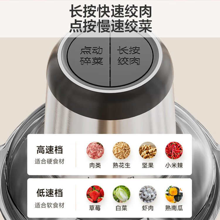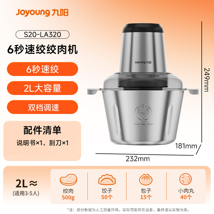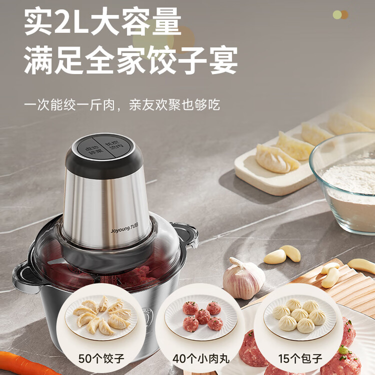 九阳(Joyoung)绞肉机婴儿辅食机绞馅机碎肉机料理机肉馅搅拌机打蒜器电动搅肉机 2L钢碗S20-LA320