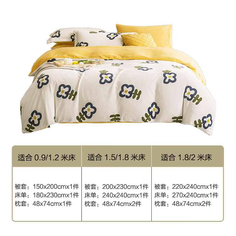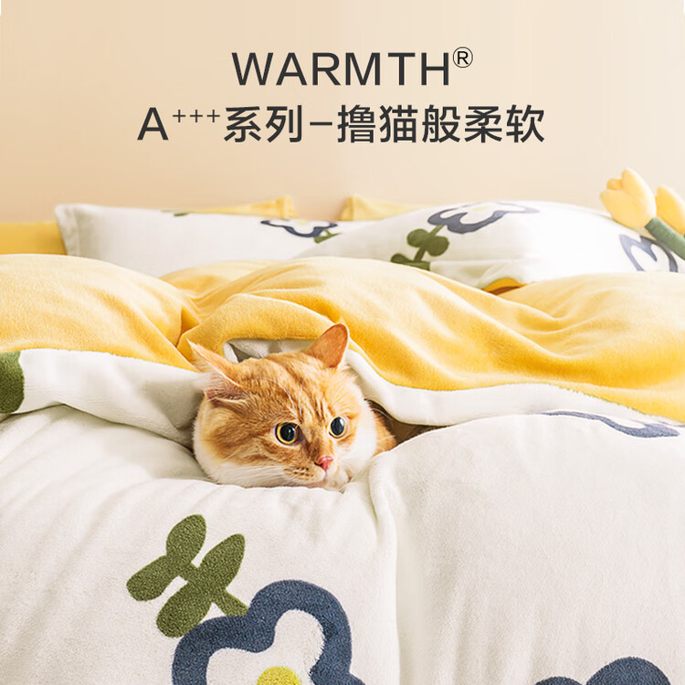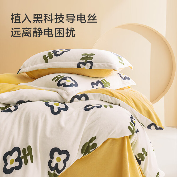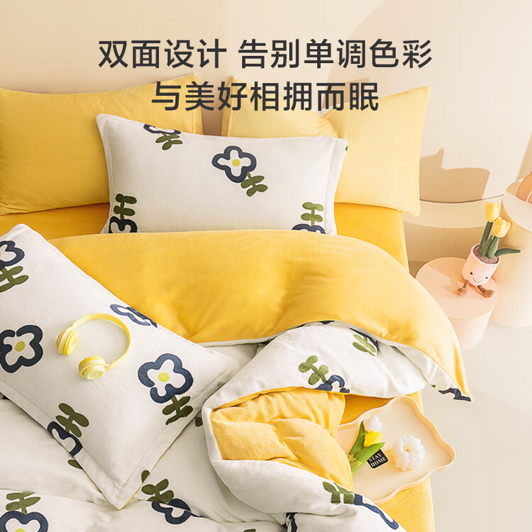 京东京造 220g牛奶绒四件套 A类秋冬加厚高克重法兰绒保暖双人床单枕套被套 1.5米床 牛奶花