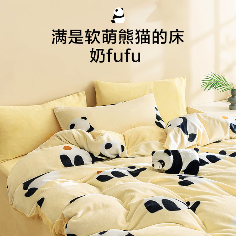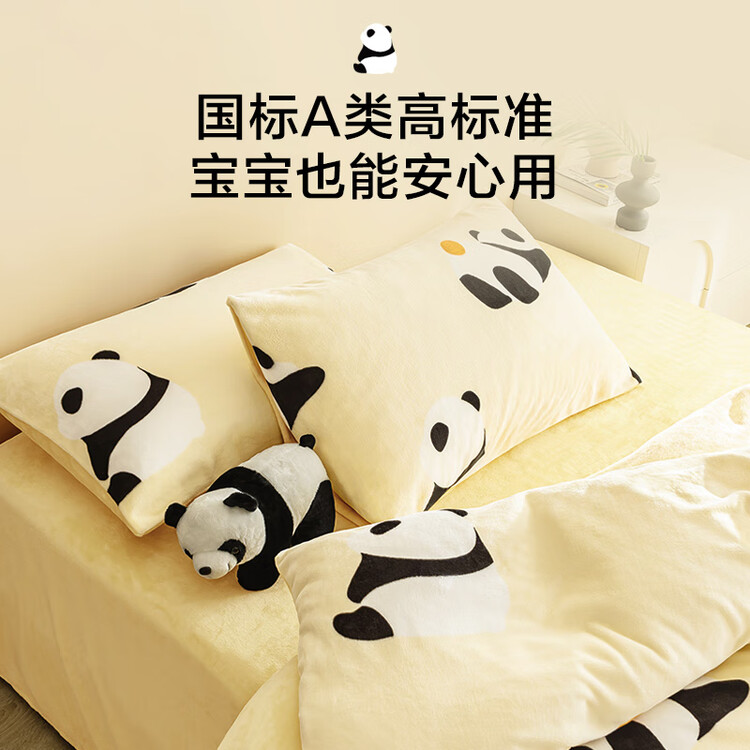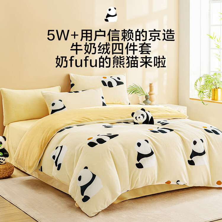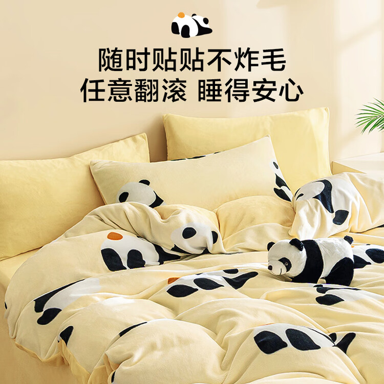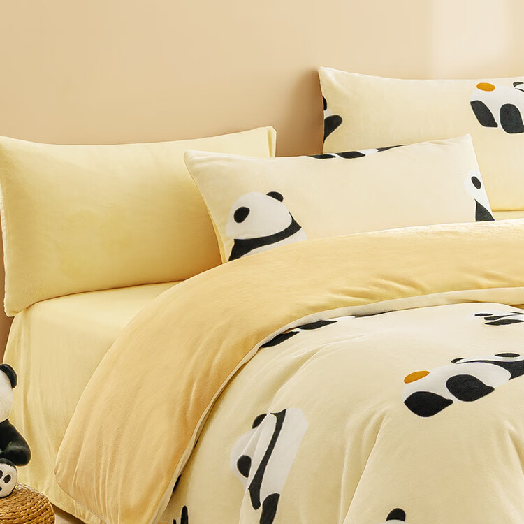 京东京造【TOP1】牛奶绒四件套A类220g秋冬加厚高克重法兰绒保暖双人床单被套1.8米床牛奶熊