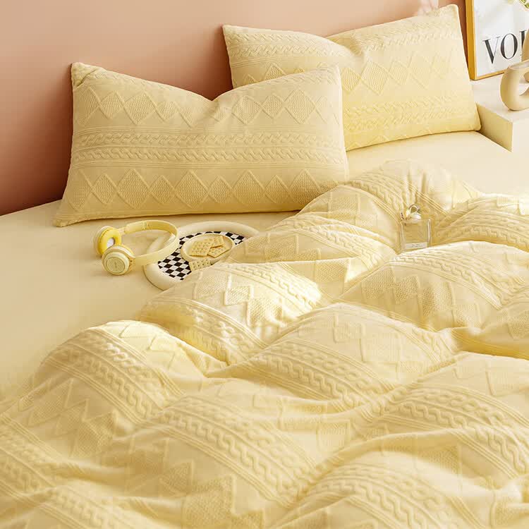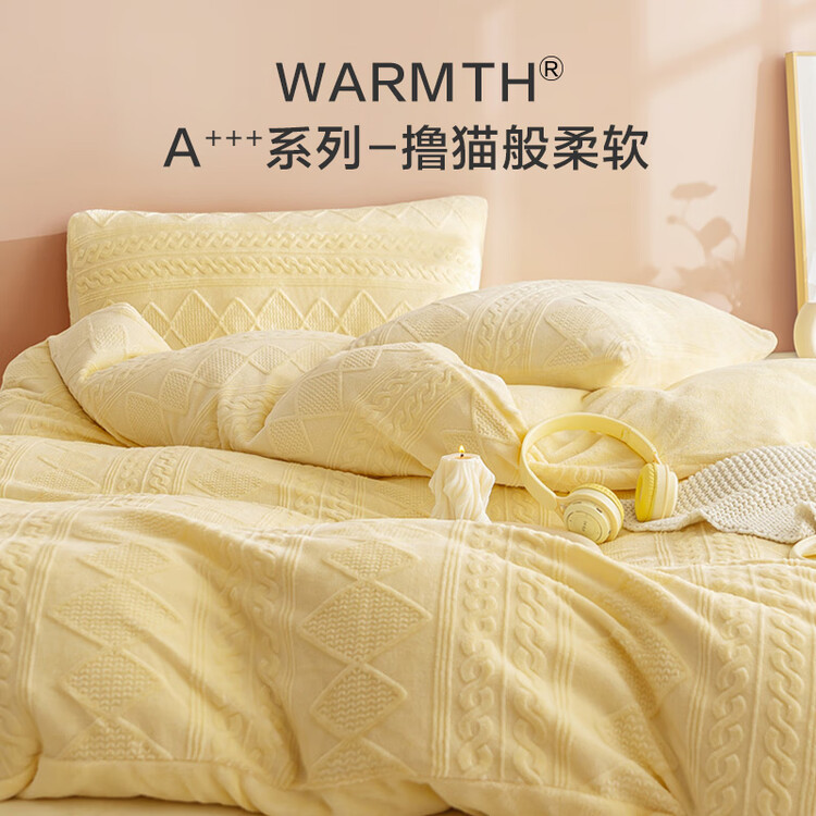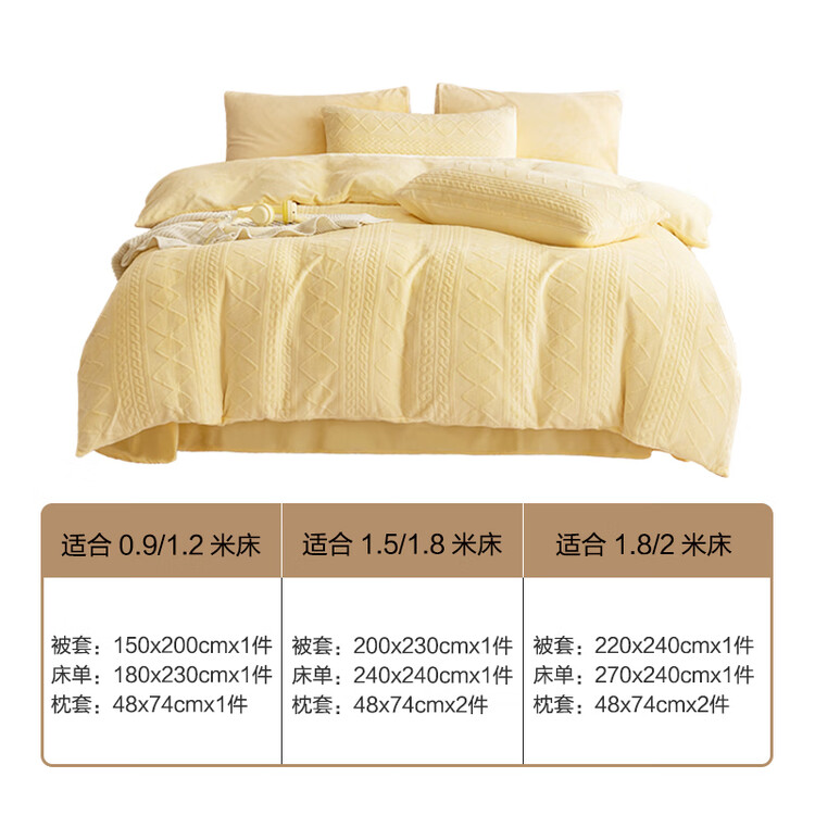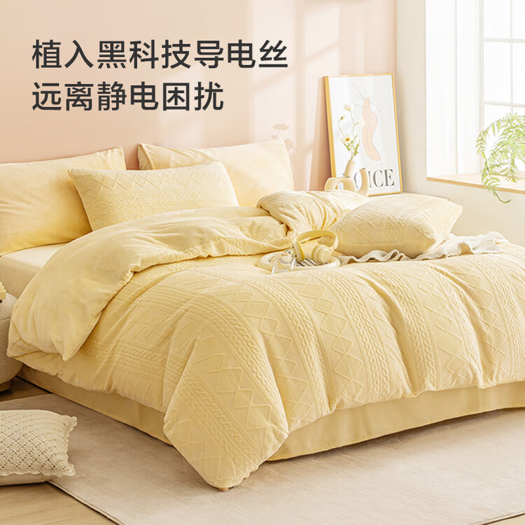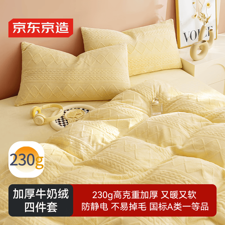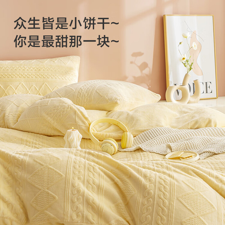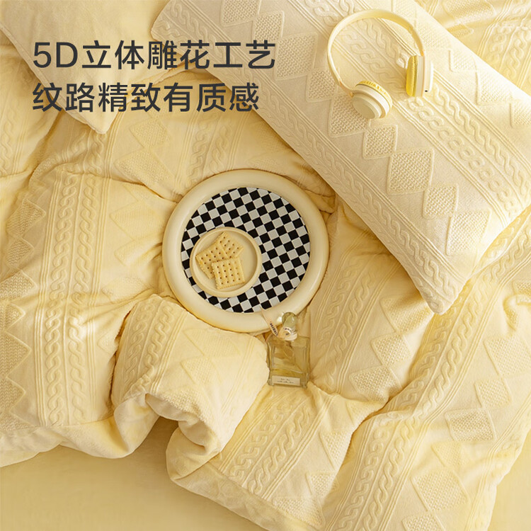 京东京造230g牛奶雕花绒四件套A类秋冬加厚高克重法兰绒保暖双人床单枕套被套 1.5米床 黄油饼干