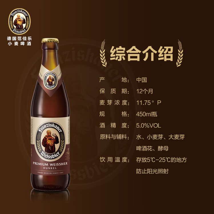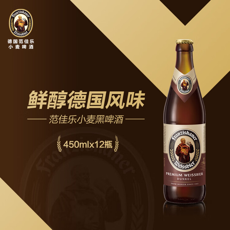 范佳乐(原教士啤酒)德国小麦黑啤酒450ml×12瓶整箱装京东自营新年送礼