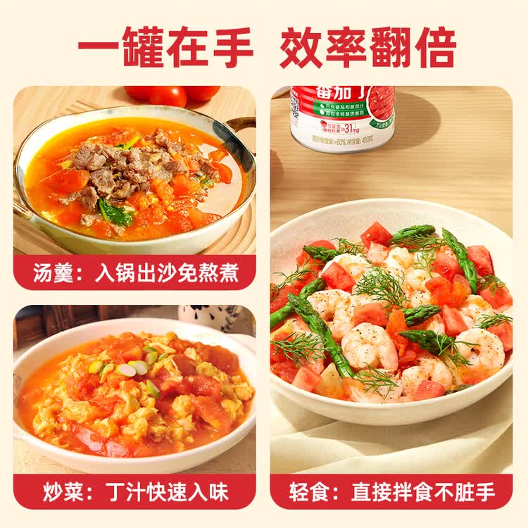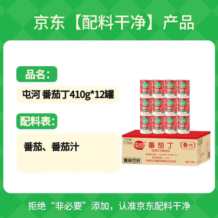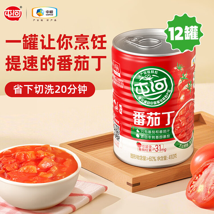 屯河番茄丁410g*12 0脂低钠低热量0添加剂新疆内蒙番茄酱西红柿块罐头