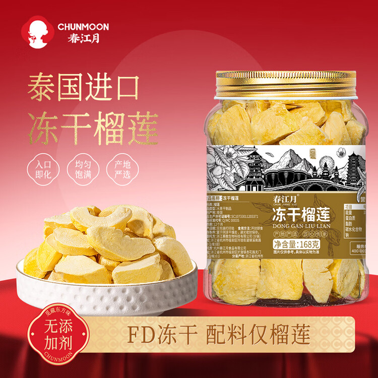 春江月冻干榴莲168g泰国进口榴莲冻干榴莲干0添加剂金枕纯果肉零食果干