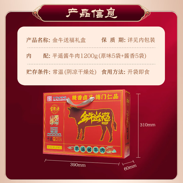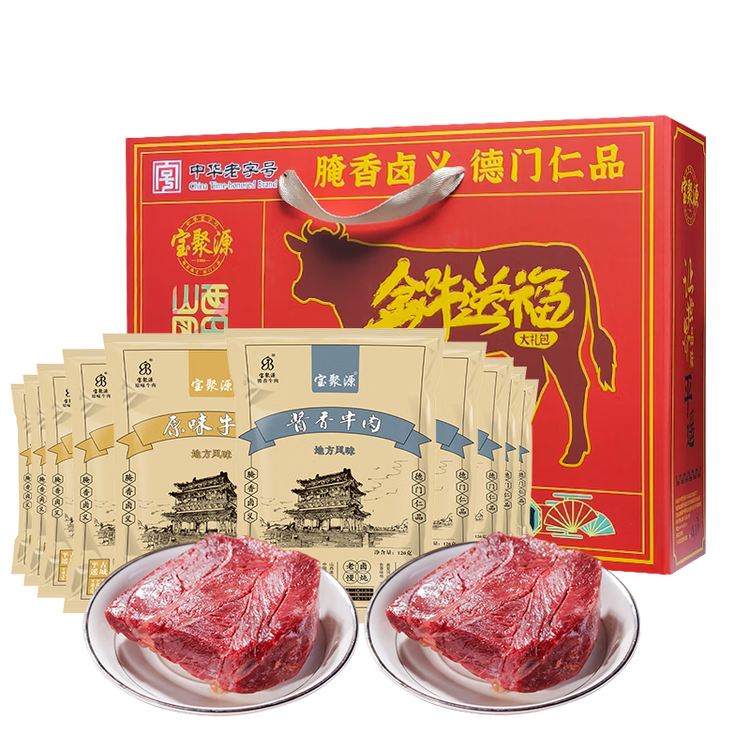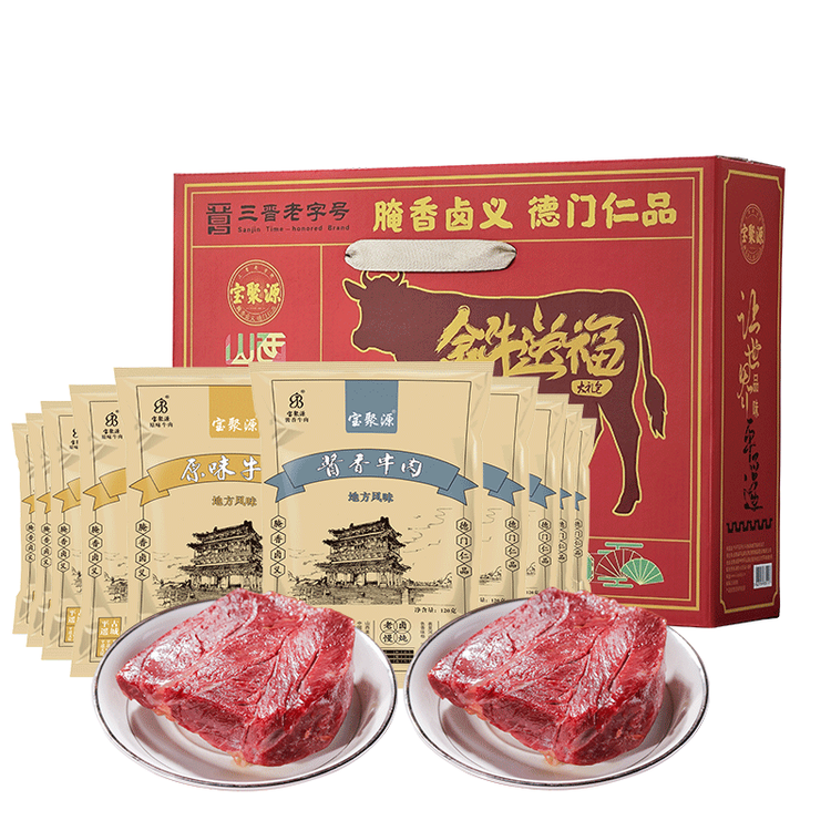 宝聚源平遥酱牛肉金牛送福纯牛肉礼盒1200g熟食下酒菜即食代餐速食夜宵