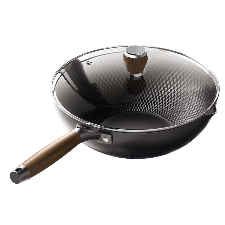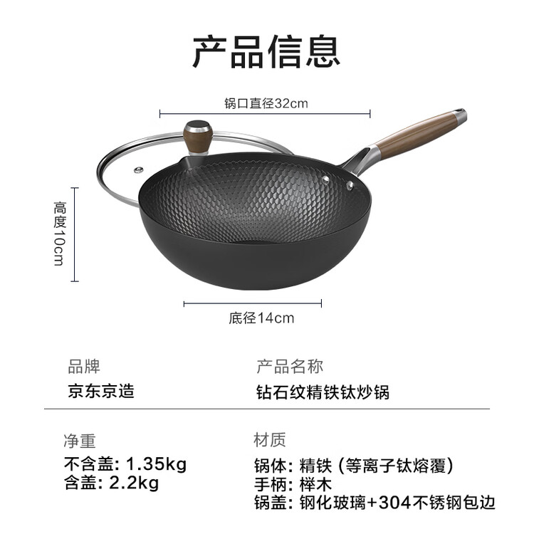 京东京造 钻石纹钛炒锅 铁锅不粘炒菜电磁炉燃气灶【健康无涂层】32cm