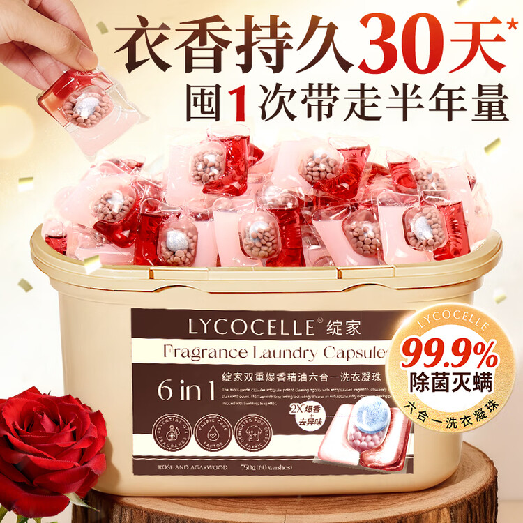 绽家香氛洗衣凝珠 红玫瑰与沉香木12.5g*60颗 持久留香除菌灭螨护色