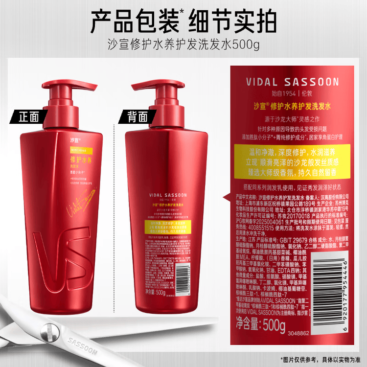沙宣大红瓶修护水养洗发水500g*3套装男女士洗头膏洗发露深层修护发丝