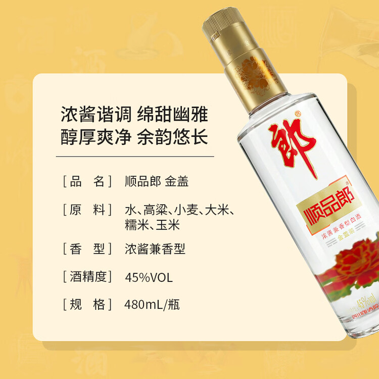 郎酒 顺品郎金盖 兼香型白酒 45度 480mL*6瓶 整箱装 (非原箱)