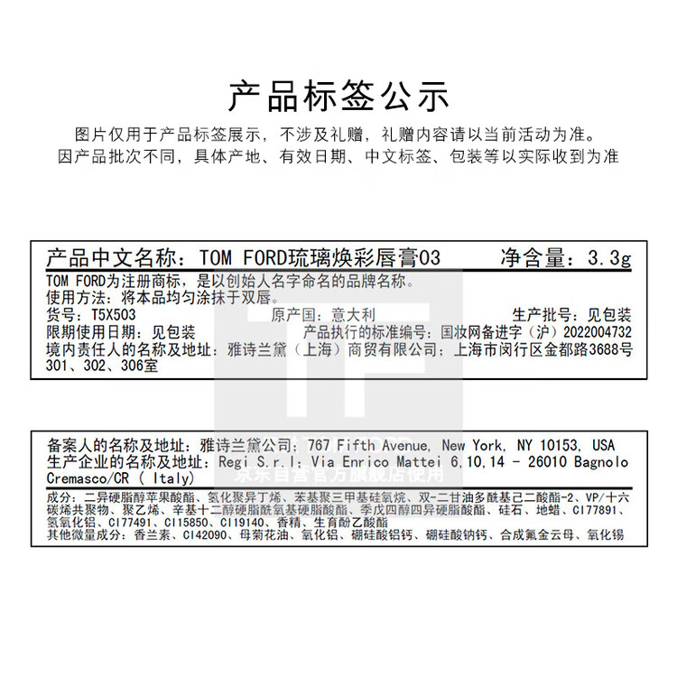 TOM FORD细白管TF口红03肉桂奶杏色 滋润唇膏化妆品生日礼物女送女友