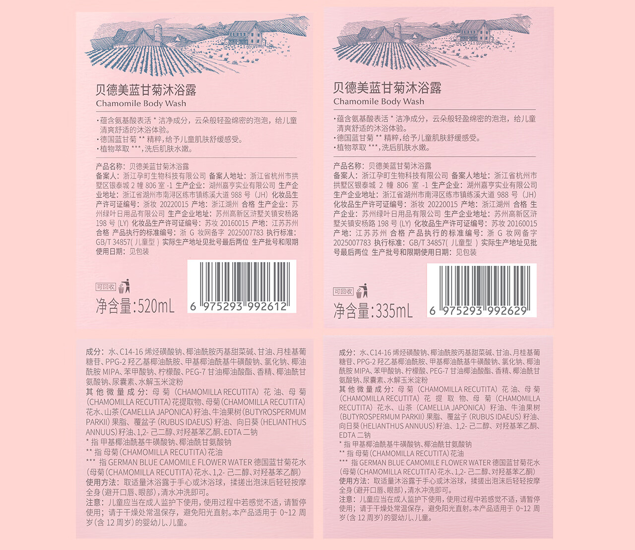 贝德美(bodcrme)蓝甘菊儿童沐浴露+洗发水套装3-4-6-12岁无硅油男女孩用520ml*2