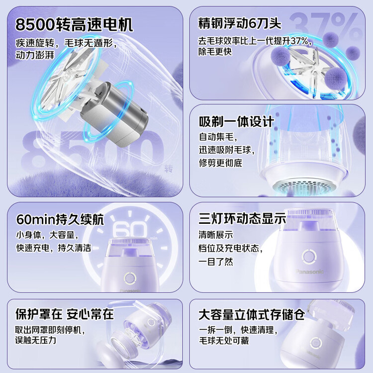京东直供新 > 家用电器 >生活电器 >京东直供 >松下(Panasonic)毛球修剪器家用毛衣剃毛器充电式去毛球神器吸球器不伤衣服秋冬必备团购礼品NI-LR002-V【六刀头】