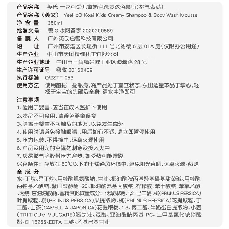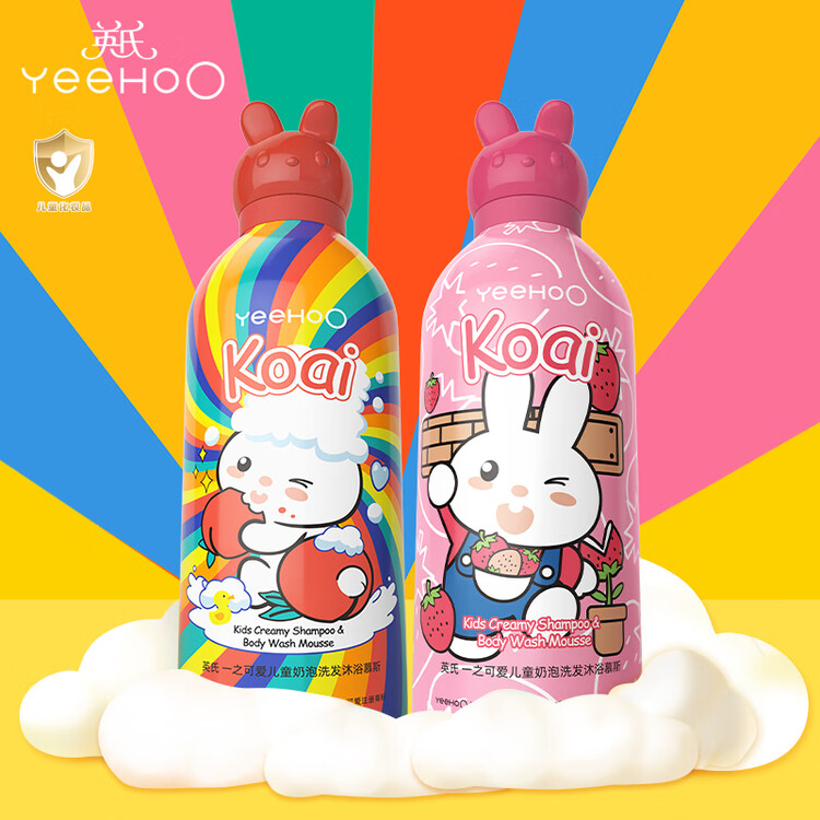 京东直供新 > 母婴 >婴童洗护 >京东直供 >英氏儿童洗发水沐浴露二合一 婴儿洗沐泡沫沐浴露小奶泡桃子味+草莓味