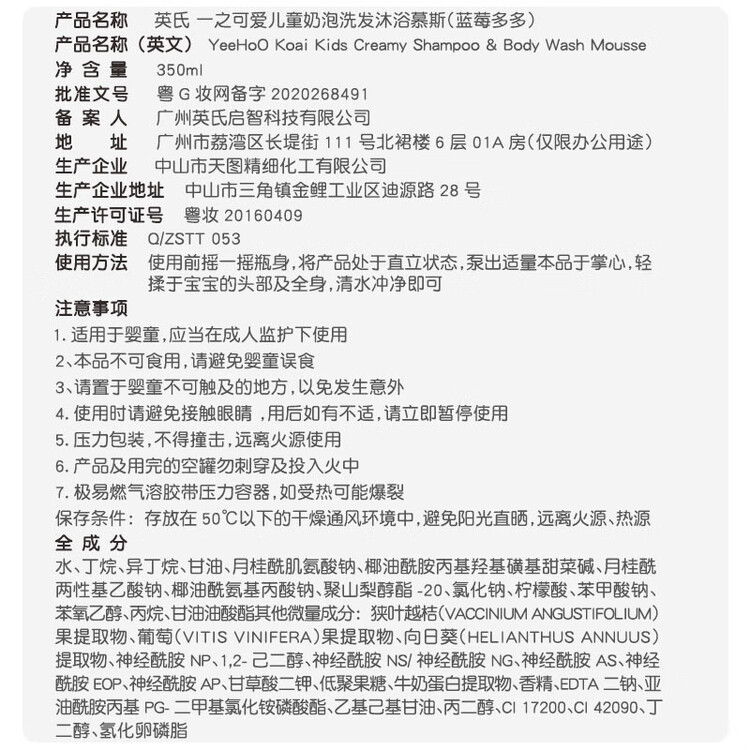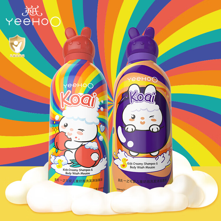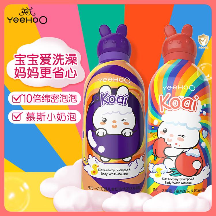 英氏儿童沐浴露小奶泡慕斯洗护二合一宝宝沐浴露桃子味+蓝莓味