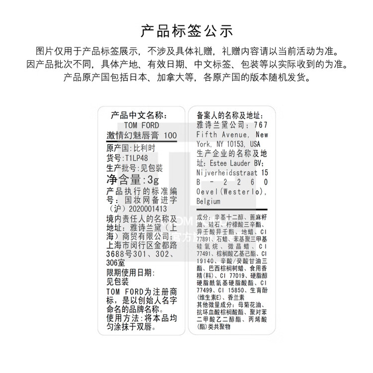 TOM FORD黑管TF口红100哑光肉桂奶茶色 显色唇膏生日礼物女送女友