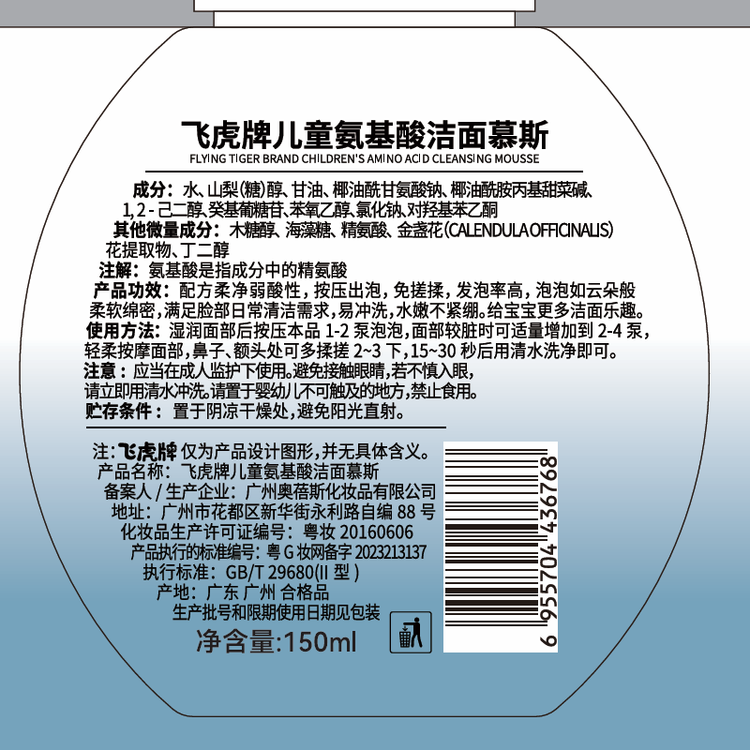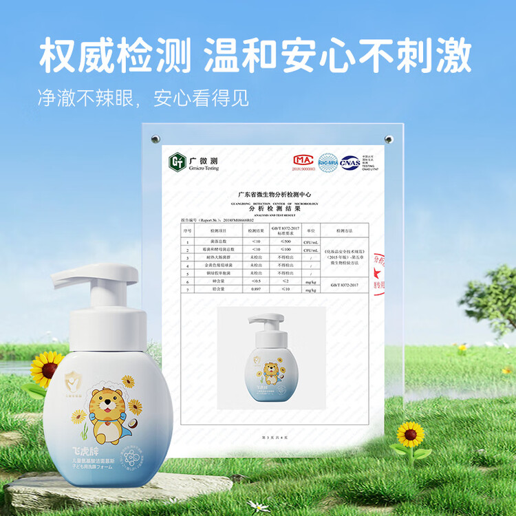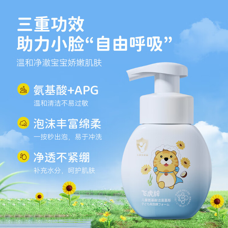 飞虎牌儿童洗面奶氨基酸1-6-1岁洁面泡沫青少年学生男女孩护肤品150ml