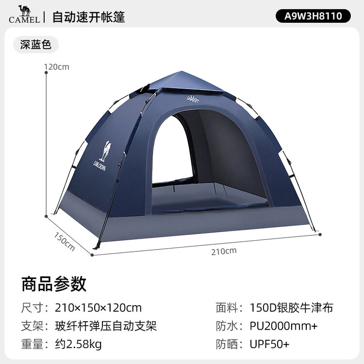 骆驼全自动帐篷速开防雨野营露营帐篷 单层 深蓝