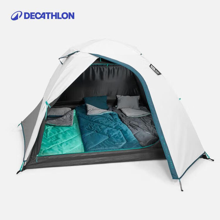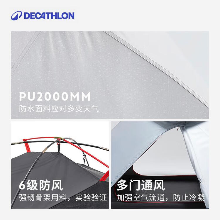迪卡侬帐篷黑胶F&B户外露营徒步防晒排热遮光速开MH100三人白色 2963895