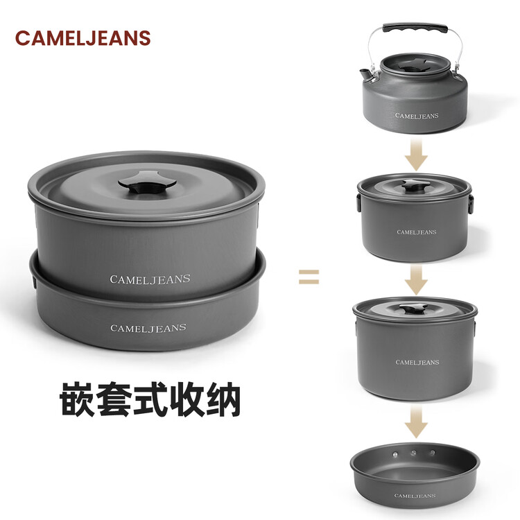CAMELJEANS户外锅具便携套锅露营炊具装备卡式炉烧水壶野营餐具野炊煮锅厨具