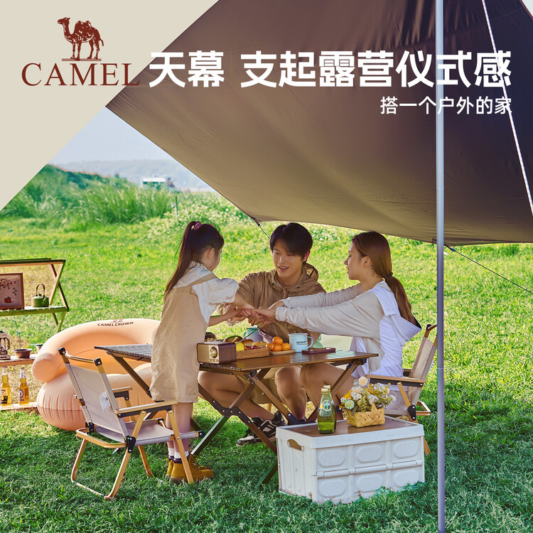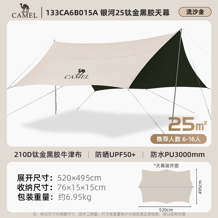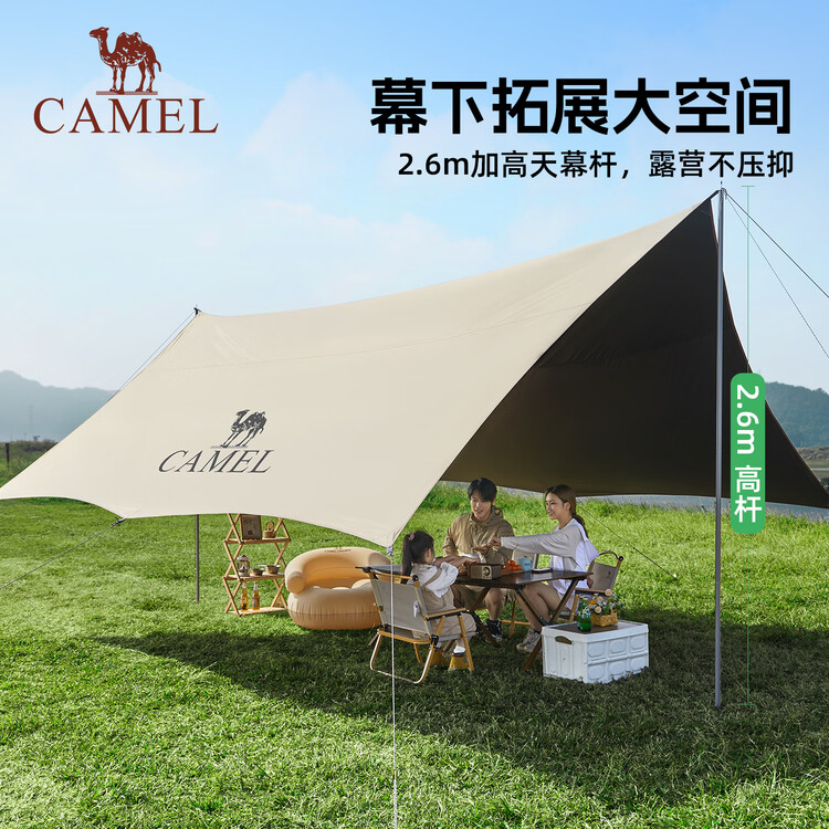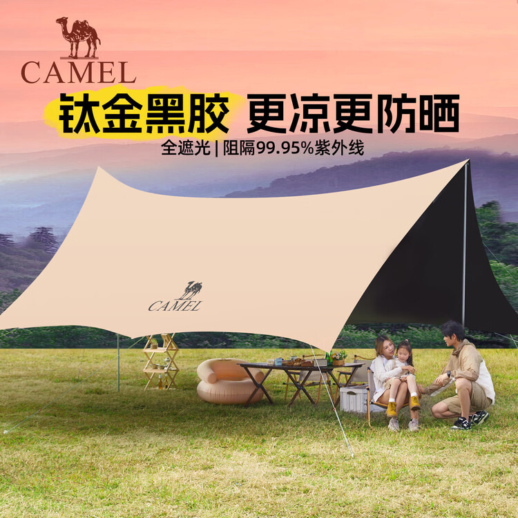 骆驼(CAMEL)户外钛金黑胶天幕帐篷露营野营防晒防雨遮阳棚装备 133CA6B015