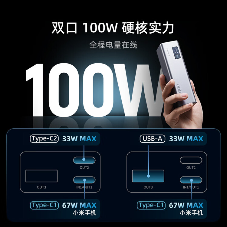 2万大容量丨双口100W丨自充65W