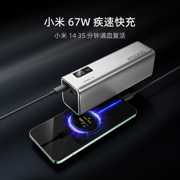 CUKTECH酷态科【3C认证可上飞机】15号电能柱SE电芯20000毫安时大容量充电宝多口100W快充适用手机/笔记本