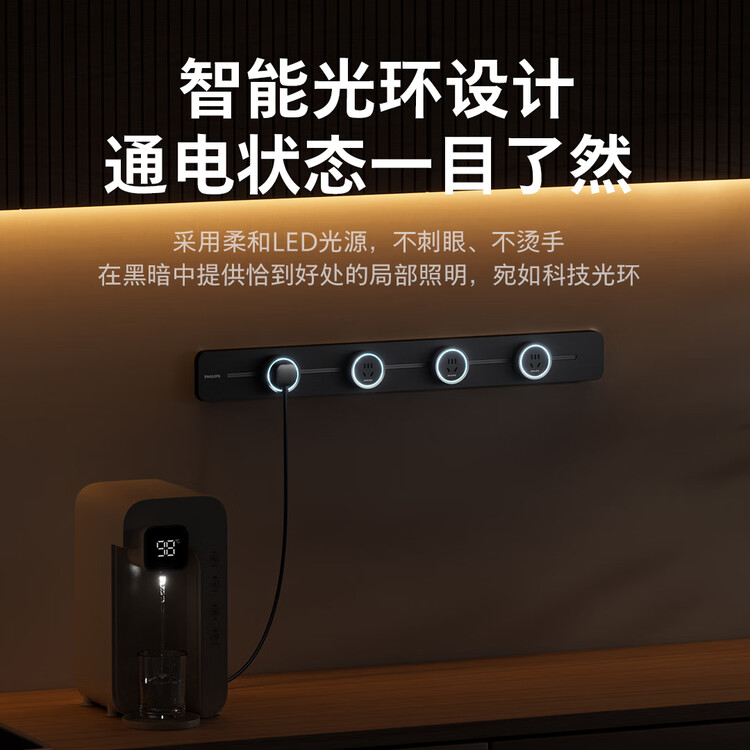京东直供新 > 电脑、办公 >外设产品 >京东直供 >飞利浦(PHILIPS)圆弧轨道插座轻薄氛围灯可移动滑轨排插墙壁挂式无线免开槽餐边柜开关插座面板75厘米+4个适配器黑