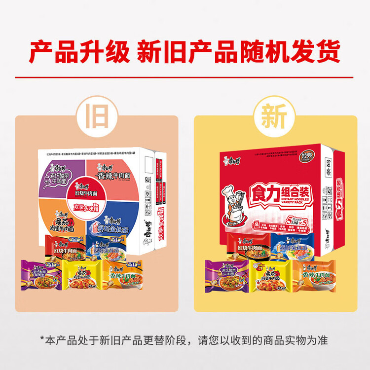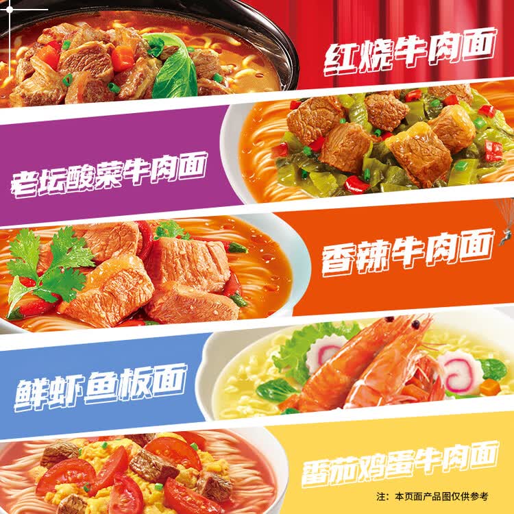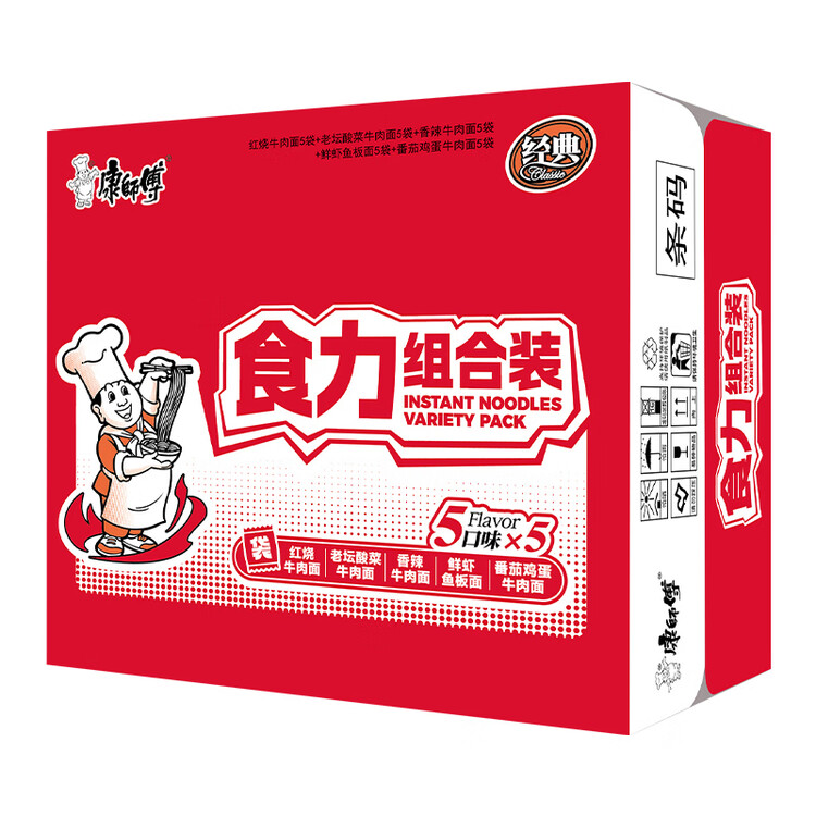 京东直供新 > 粮油调味 >方便食品 >京东直供 >康师傅方便面 经典红烧+香辣+鲜虾+酸菜+番茄104*25袋 泡面整箱速食组合